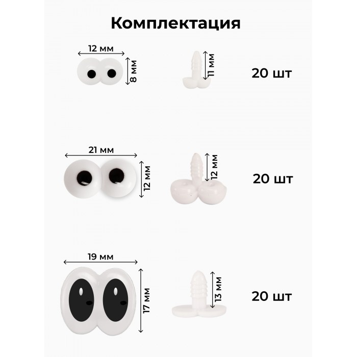Глазки винтовые двойные с фиксатором "ПУЧИКИ"-1 шт (60 штук-17*19мм/12*21мм/8*12мм/60 фиксаторов) 265720