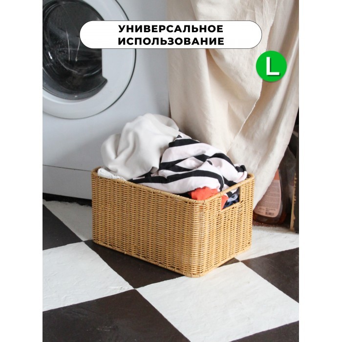 Корзина плетеная б/крышки L 360*260*200-mpl-fbo иск/ротанг, песочный 263007