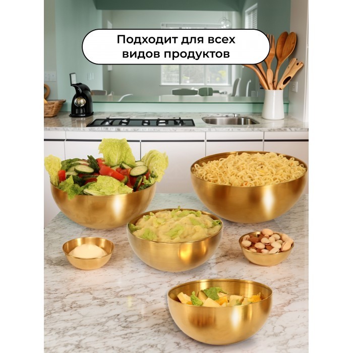 Набор Мисок из нержавеющей стали 4шт (15см-2шт+20см-2шт +соусник 8, 5 см-2 шт ) золото 265460