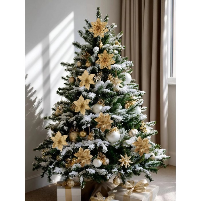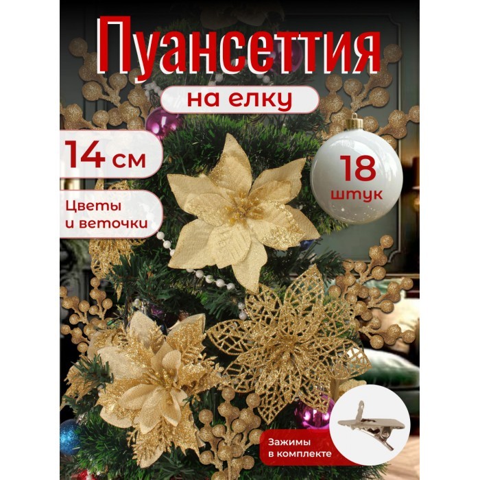 Набор Цветы Пуансеттия (18 штук - 14 см + веточки+зажимы) золото 266220