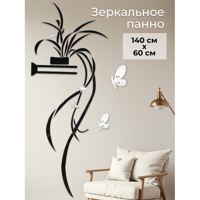 Интерьерные зеркальные наклейки Цветок ( 120*60 см ) черный/серебро 264244