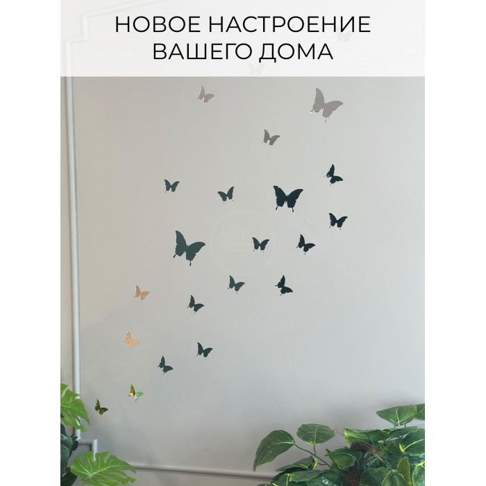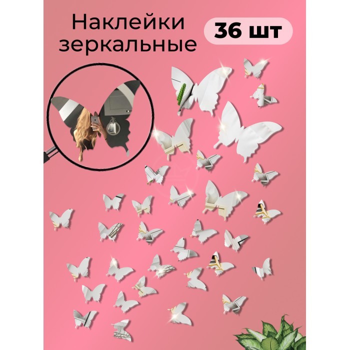 Интерьерные зеркальные наклейки Бабочки-1 набор ( 36 штук ) серебро 260031
