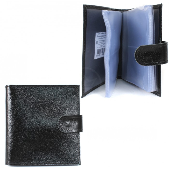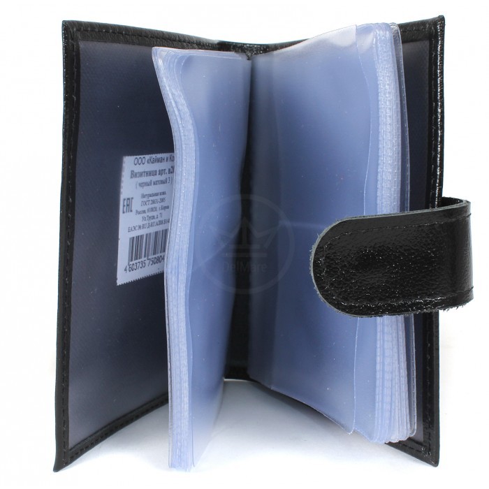 Визитница Croco-В-203 (с хляст, 2х-рядная, 32карточки) натуральная кожа черный матовый (3) 209403