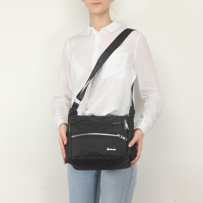 Сумка женская текстиль BoBo-09100-mpl, 1отдел, плечевой ремень, (УЦЕНКА/ДЕФЕКТ:расходится молния на основном отделении) черный 234037